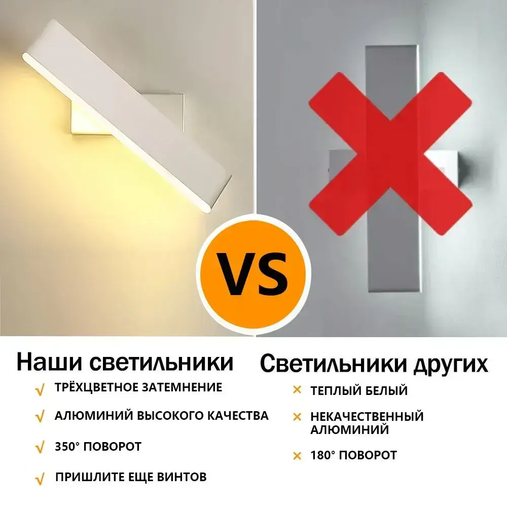 Светодиодный настенный светильник, трехцветный с затемнением, белый, крепежные винты