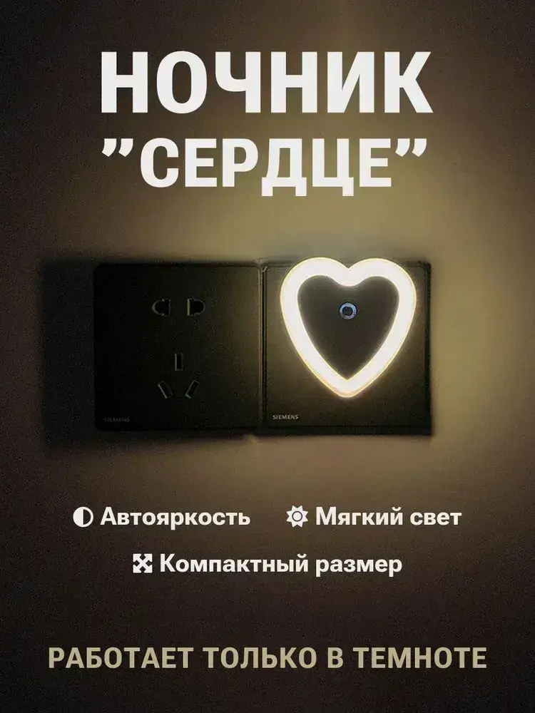 Светодиодный ночник с датчиком света LED, белый с включением от розетки