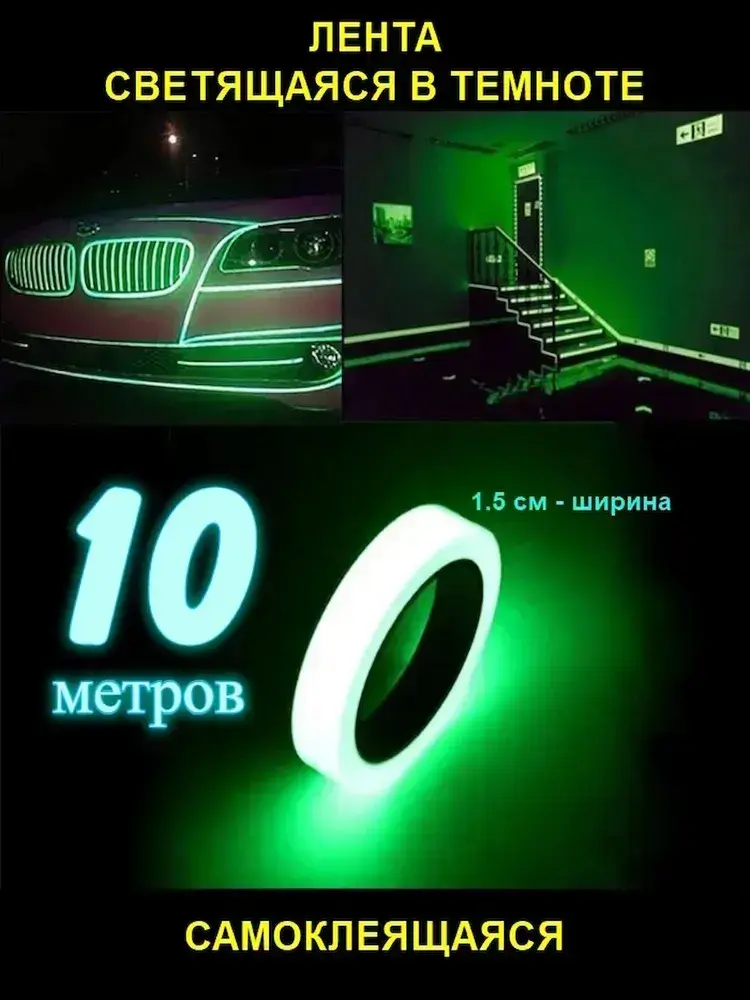 Светящаяся в темноте самоклеящаяся лента, ширина 15 мм, длина 10м