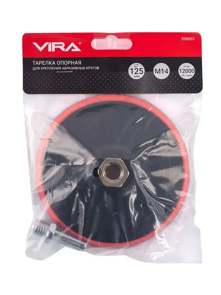 Тарелка опорная 125 мм насадка для дрели и УШМ для АГШК (черепашки) с липучкой и адаптером VIRA