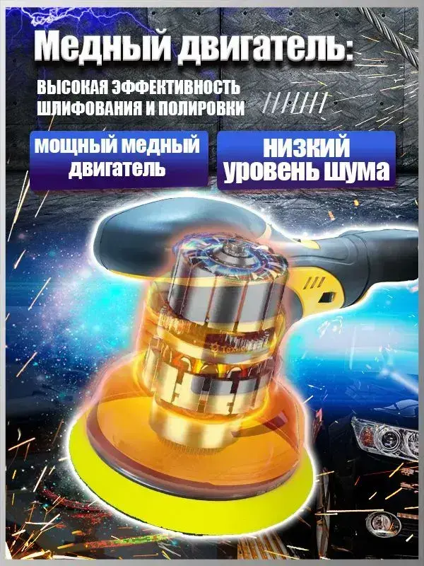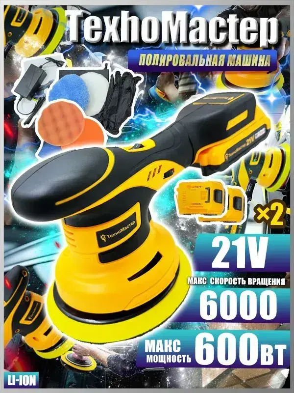 ТехноМастер TooL Аккумуляторный автомобильный полировщик 6 скоростей, 2 батареи 2000 мАч