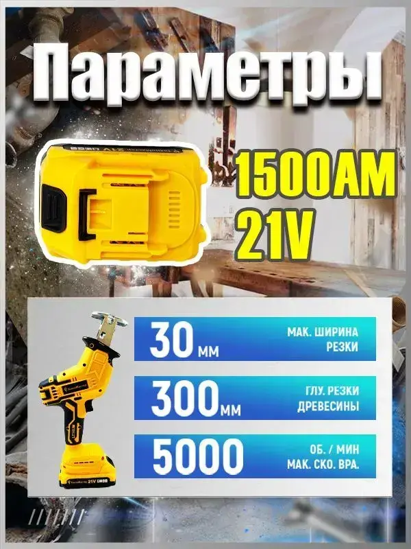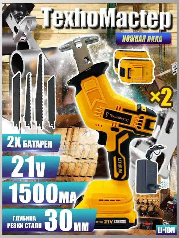ТехноМастер TooLs Аккумуляторная электрическая сабельная пила (+4 лезвия для разных видов материалов)