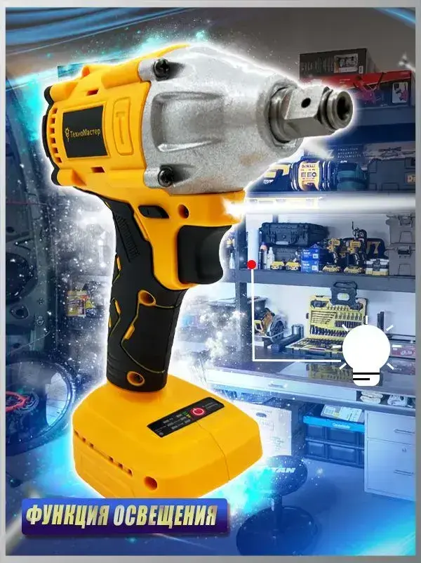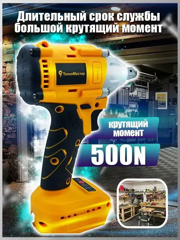 ТехноМастер TooLs Ударный гайковерт, бесщеточный, аккумуляторный, 1/2 дюйма, 18 в, батарея не включена
