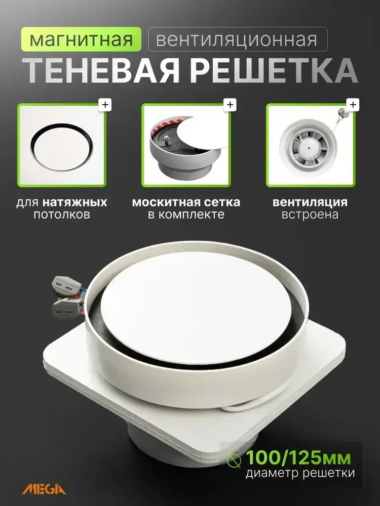 Теневая магнитная вентиляционная решетка с вентилятором 100 и 125 мм