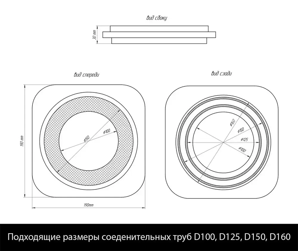 Теневой диффузор вентиляционный без клапана D150 mm