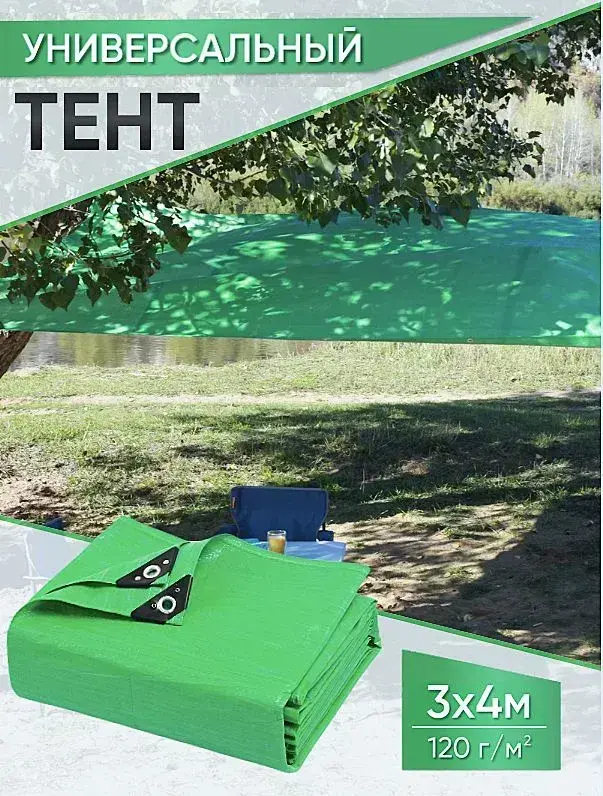 Тент укрывной усиленный 3х4м., 120г/м2 с люверсами, полог универсальный (туристический, строительный, садовый) Миротент, Россия
