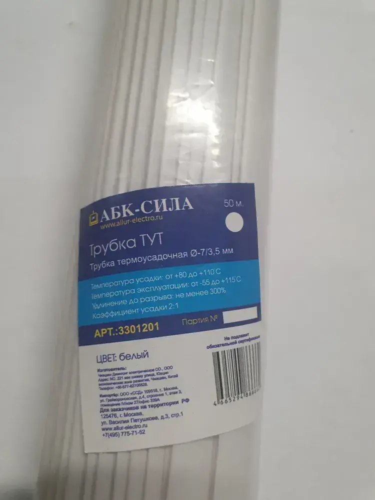 Термоусадка для проводов 7 мм белая набор 1м 50 шт