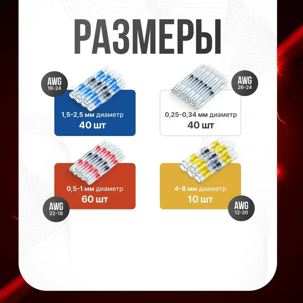 Термоусадка для проводов с клеевым слоем и припоем 150 шт; набор термоусадочных трубок