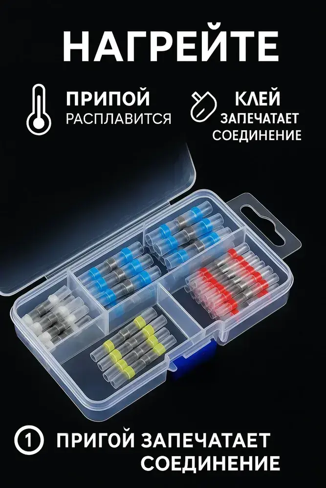 Термоусадка для проводов с клеевым слоем припоем, набор 150 штук