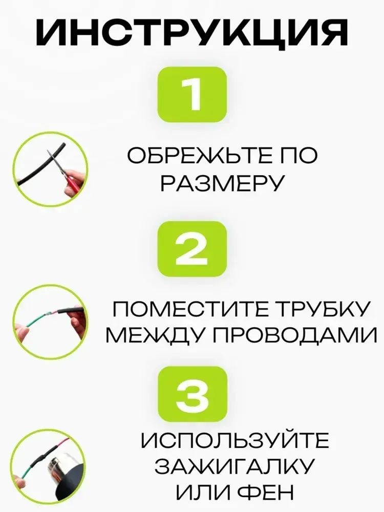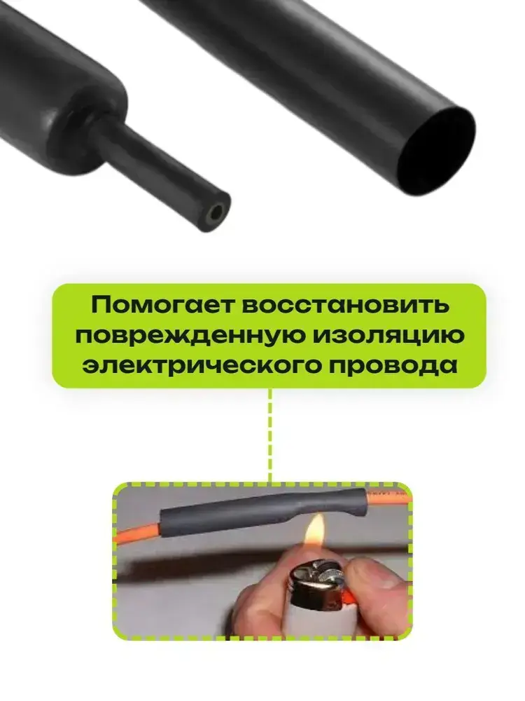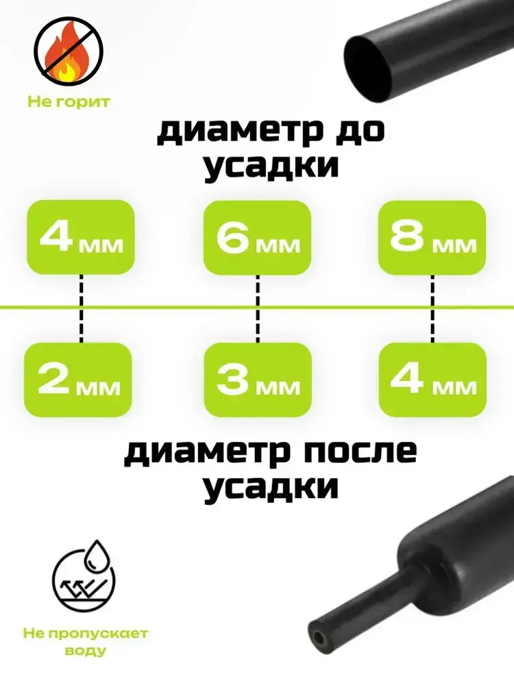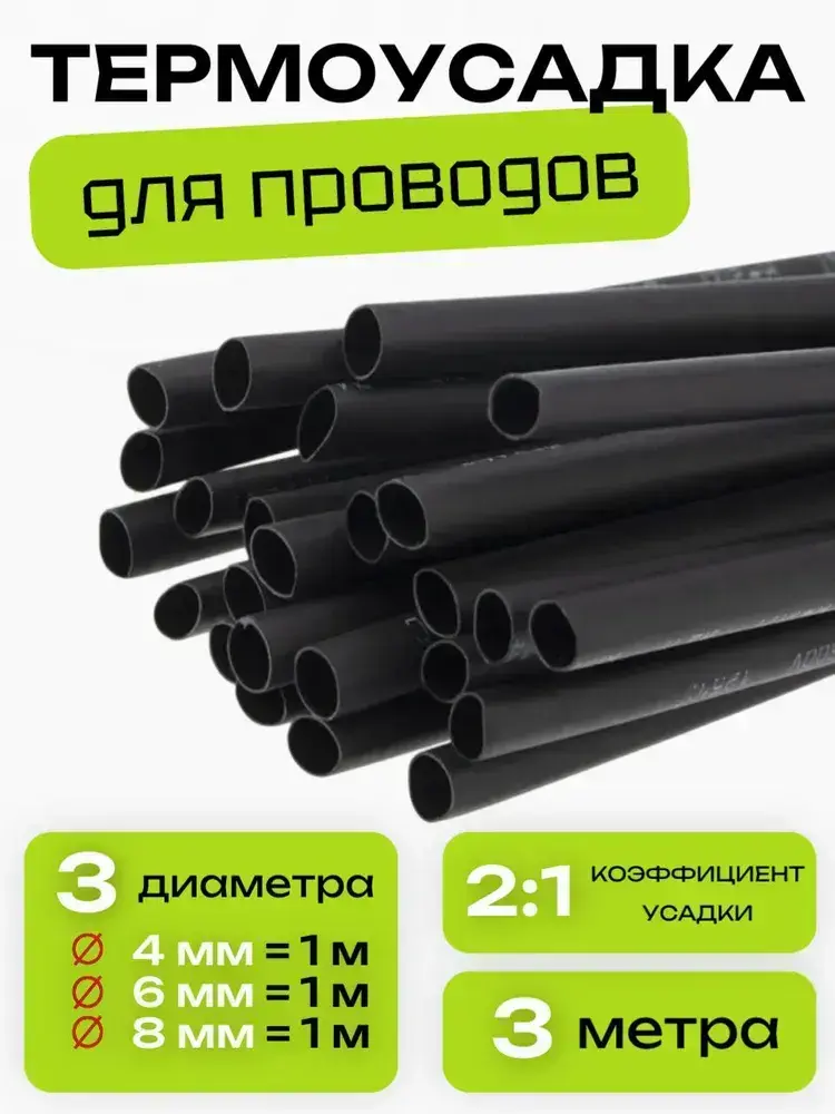 Термоусадочная трубка для проводов набор, Диаметр 4, 6, 8 мм, Черная, 3 метра