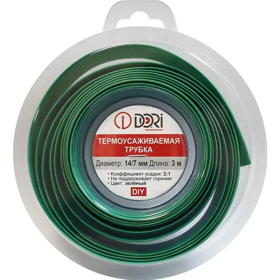 Термоусаживаемая трубка DORI (14/7, зелёная, 3 метра)