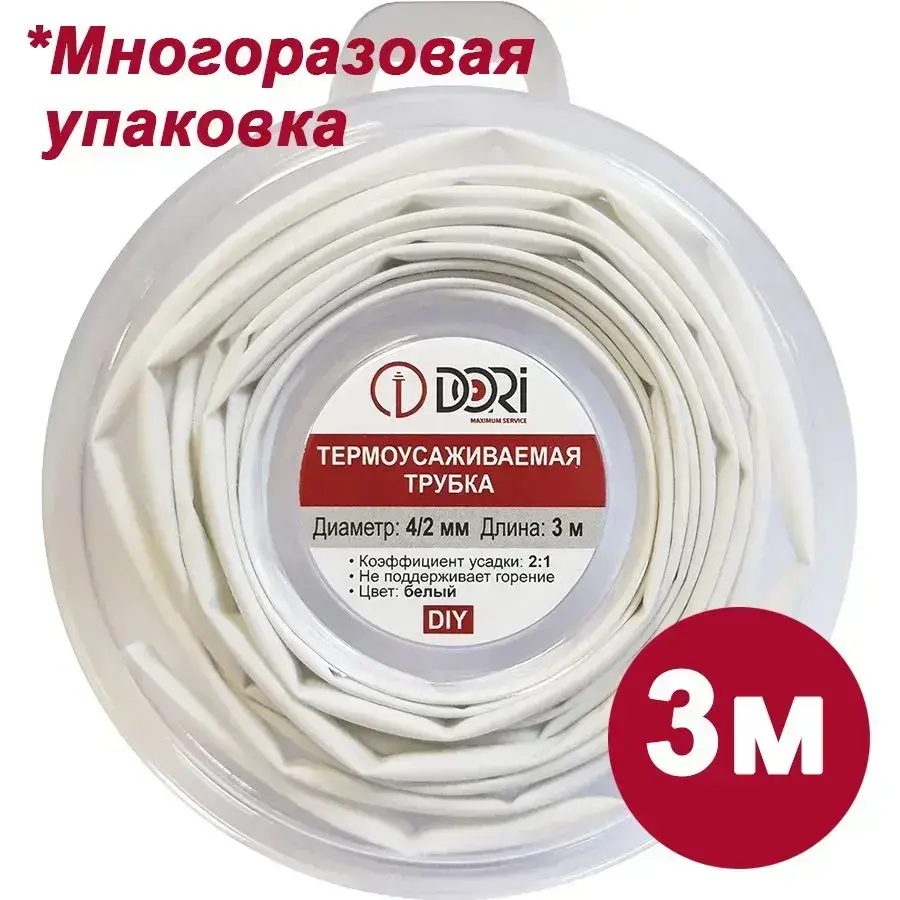 Термоусаживаемая трубка DORI (4/2, белая, 3 метра)