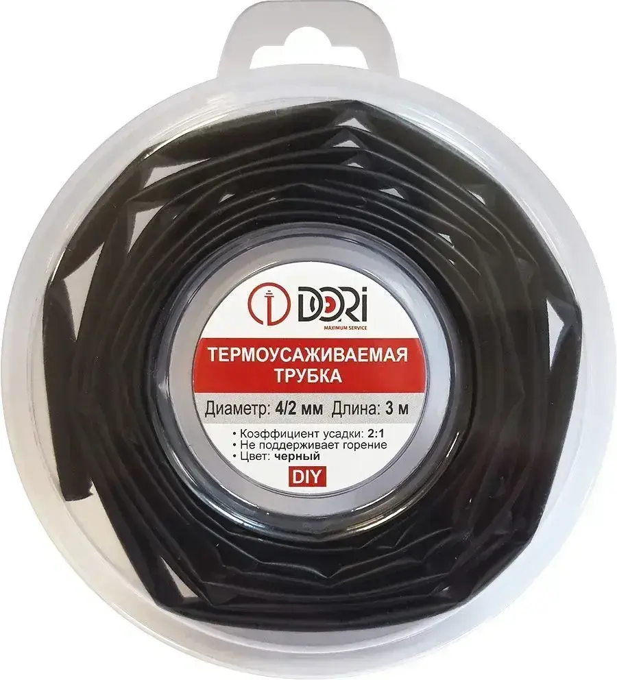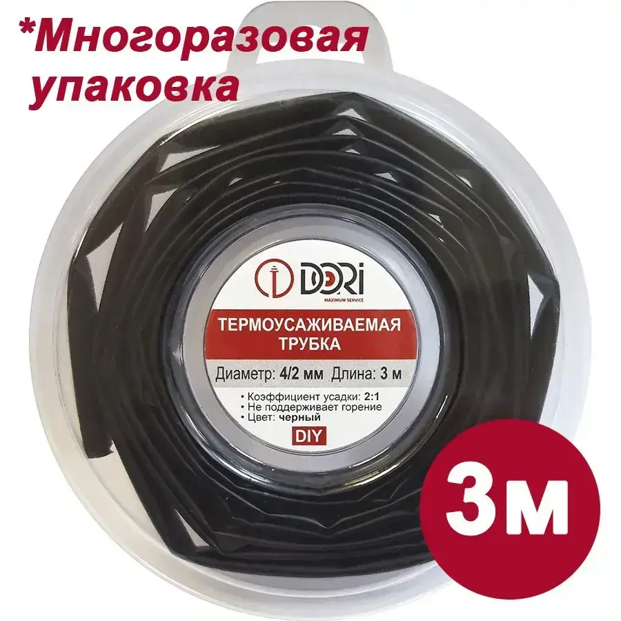 Термоусаживаемая трубка DORI (4/2, черная, 3 метра)