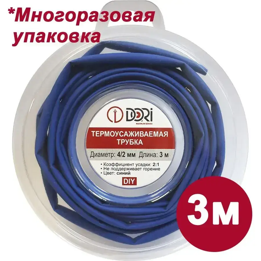 Термоусаживаемая трубка DORI (4/2, синяя, 3 метра)