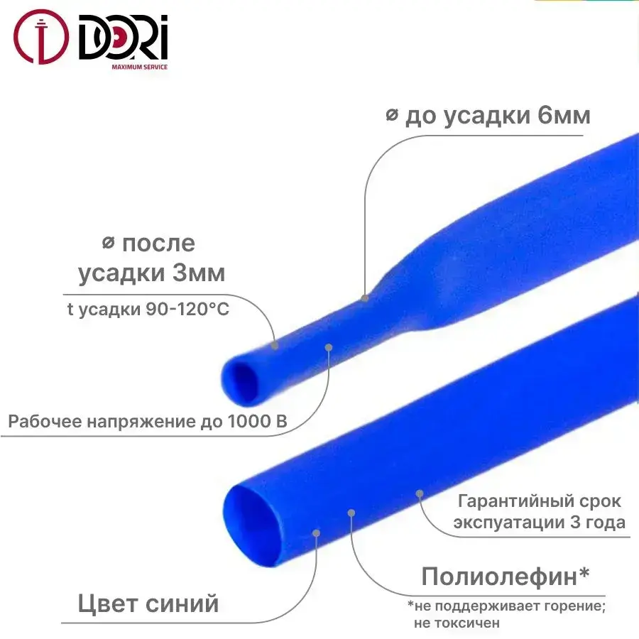 Термоусаживаемая трубка DORI (6/3, синяя, 3 метра)