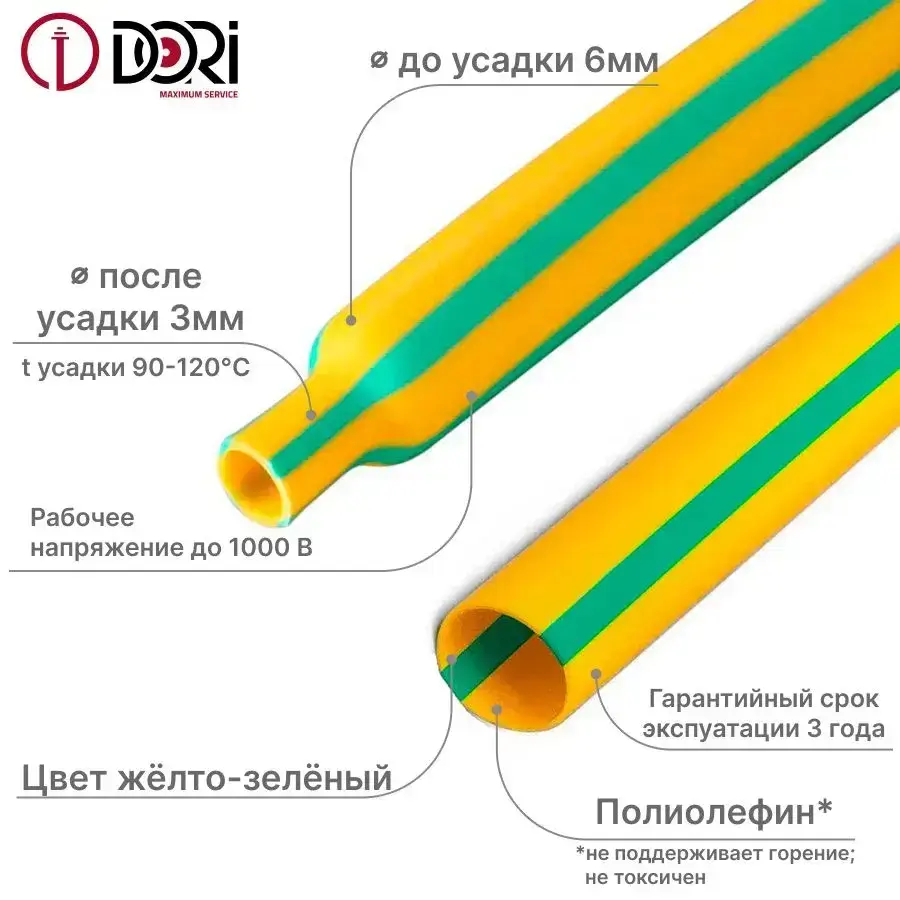 Термоусаживаемая трубка DORI (6/3, жёлто-зелёная, 3 метра)