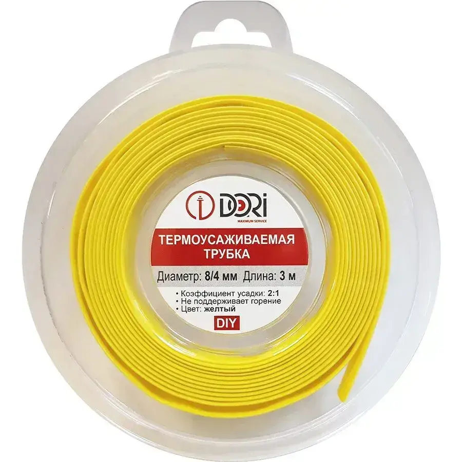 Термоусаживаемая трубка DORI (8/4, жёлтая, 3 метра)