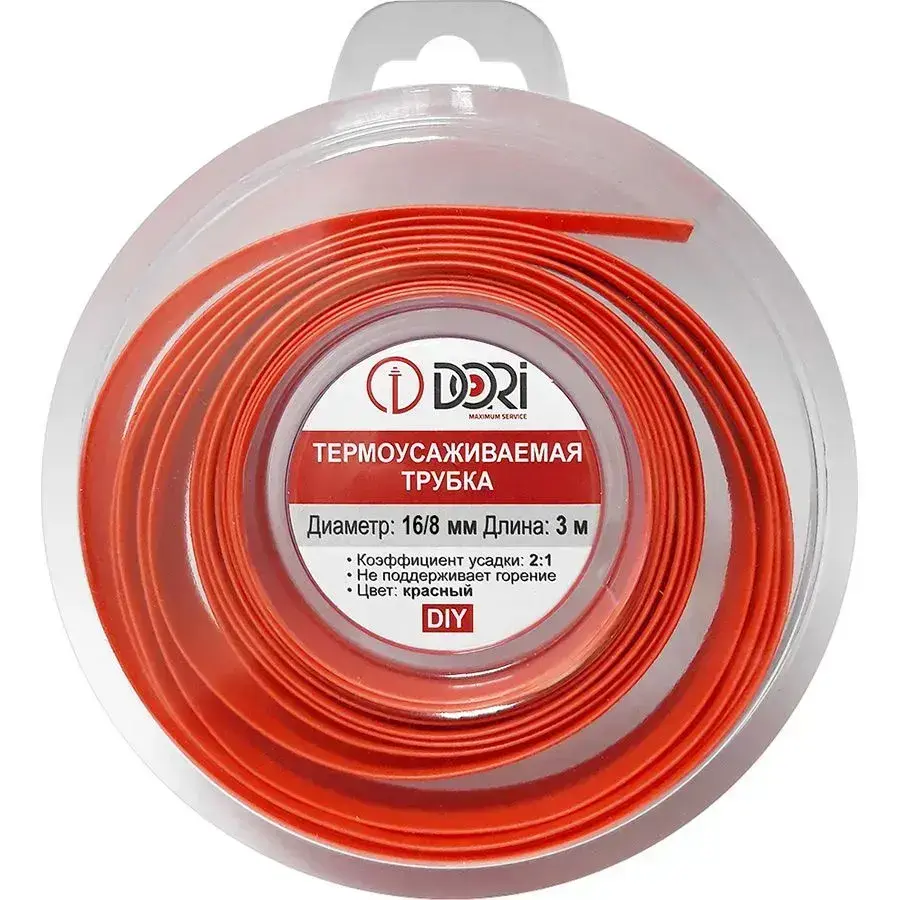 Термоусаживаемая трубка / термоусадка DORI (16/8, красная, 3 метра)