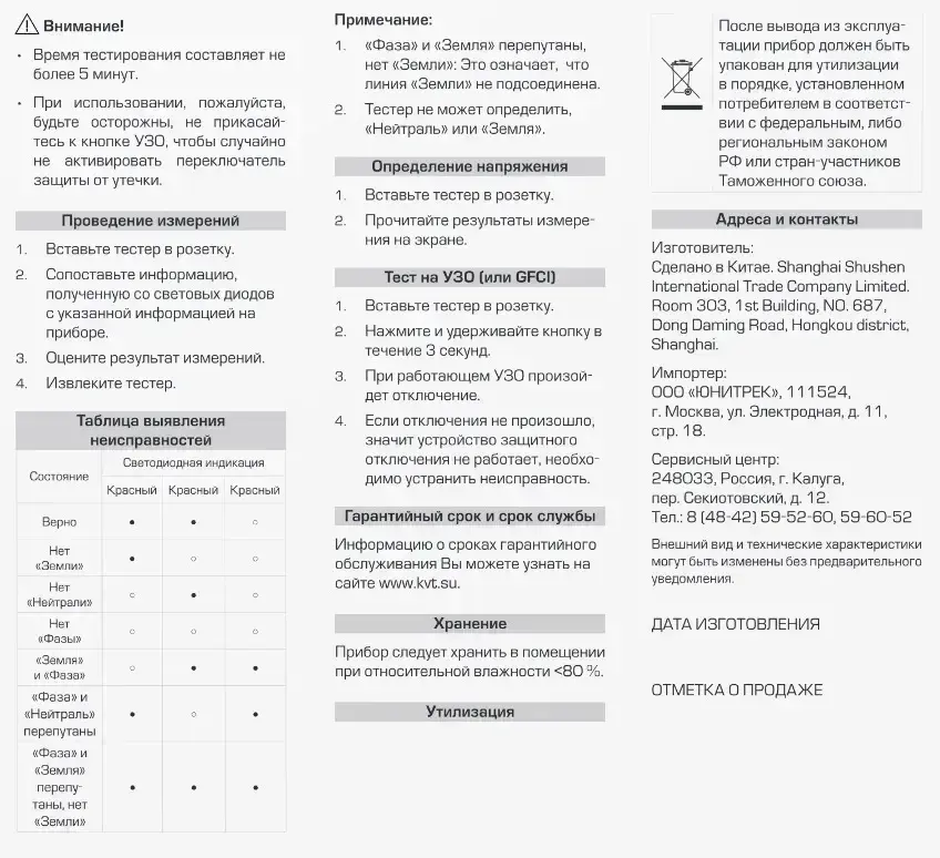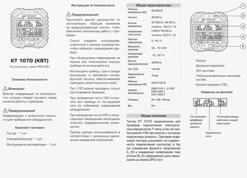 Тестер розеток и УЗО КТ 107D PROLINE (КВТ) 86321