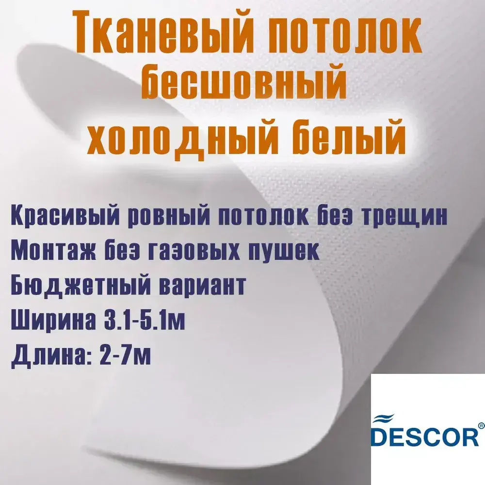Тканевый натяжной потолок Descor D-Premium (Германия) холодный белый цвет (№450). 2.5м x 2м