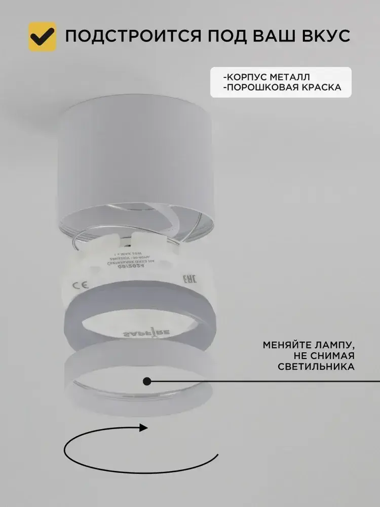 Точечные светильники потолочные GX53 белый, накладной светодиодный спот