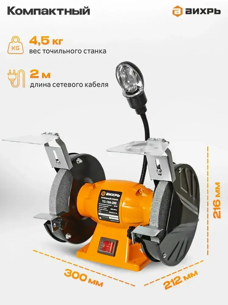 Точильный станок элетрический ТС-15А-200 Вихрь ( 200 Вт, 2950 об/мин, круг 150мм, 1 год гарантии)