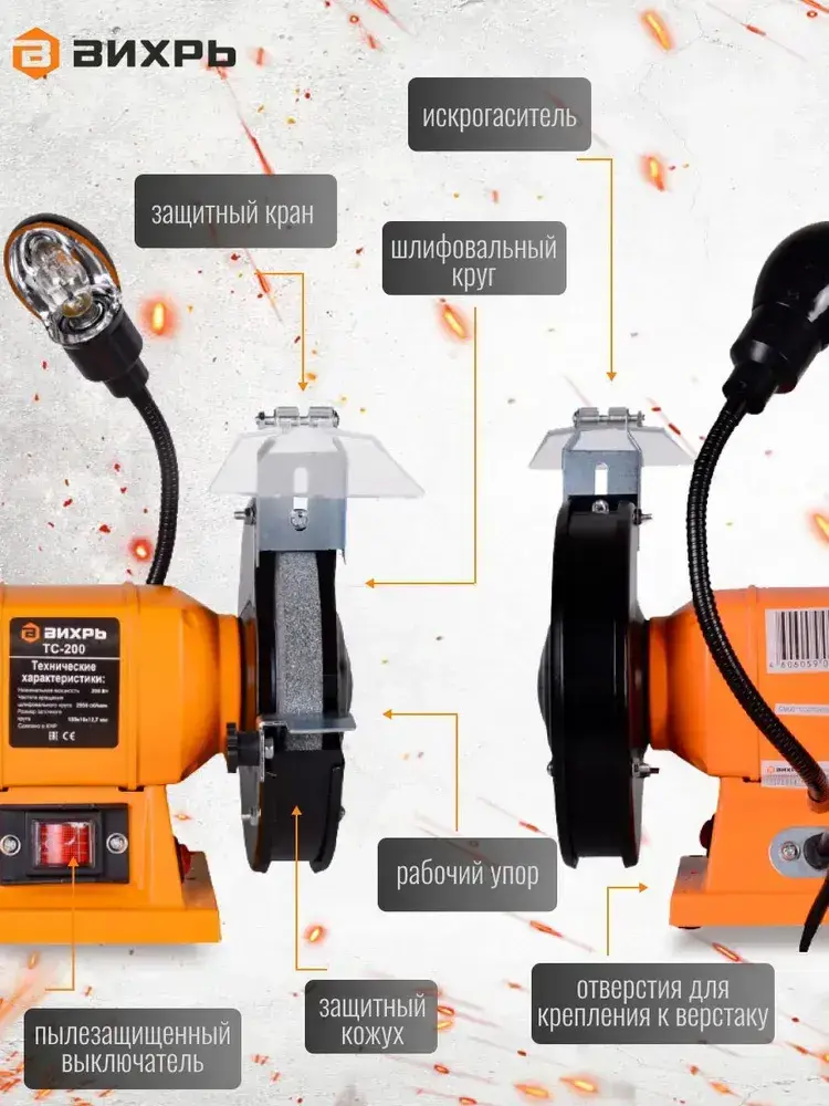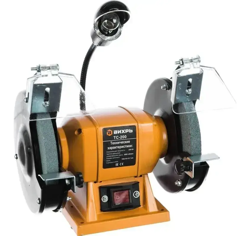 Точильный станок Вихрь ТС-2OO (0,2 кВт, 220 В, 2950 об/мин, круг 150 мм, подсветка) для ножей / многофункциональный/ 1 год гарантии