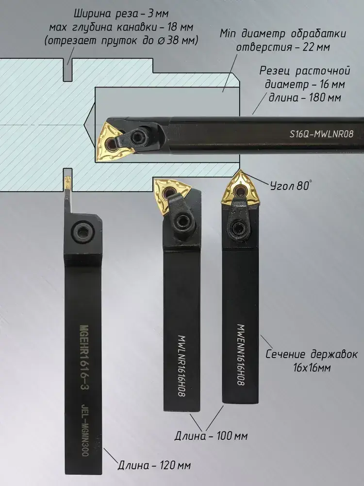 Токарные резцы по металлу 16х16 / Набор резцов 4 шт