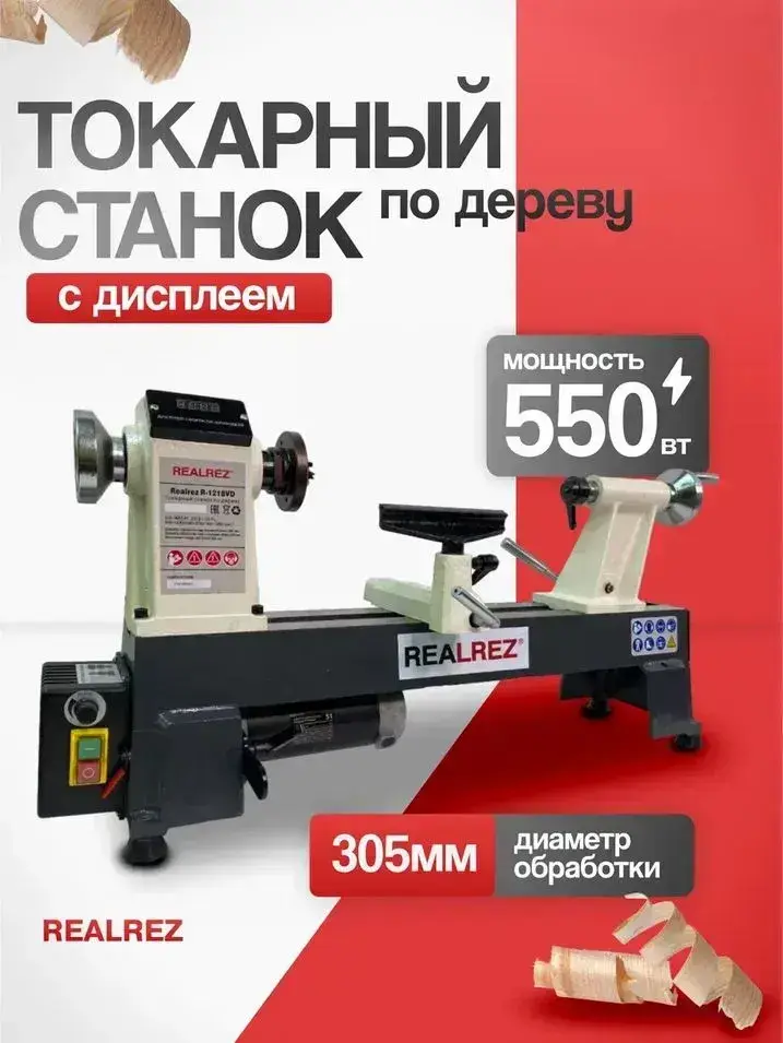 Токарный станок по дереву Realrez R-1218VD 550 W