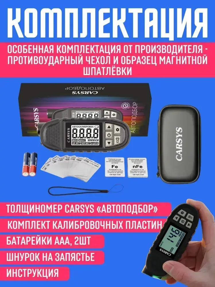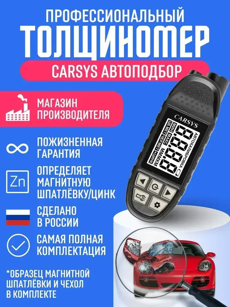 Толщиномер автомобильный CARSYS АВТОПОДБОР, максимальная комплектация, определение цинка и магнитной шпатлевки, диапазон 3500мкм