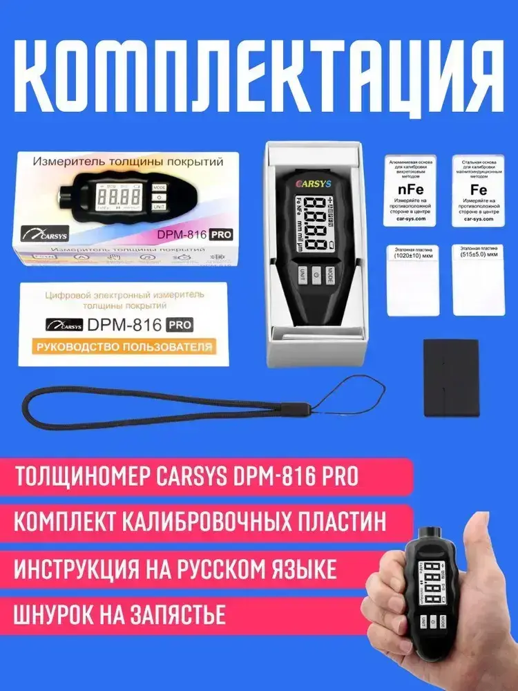 Толщиномер автомобильный CARSYS DPM 816 PRO, автоматическая калибровка, по всем видам металлов