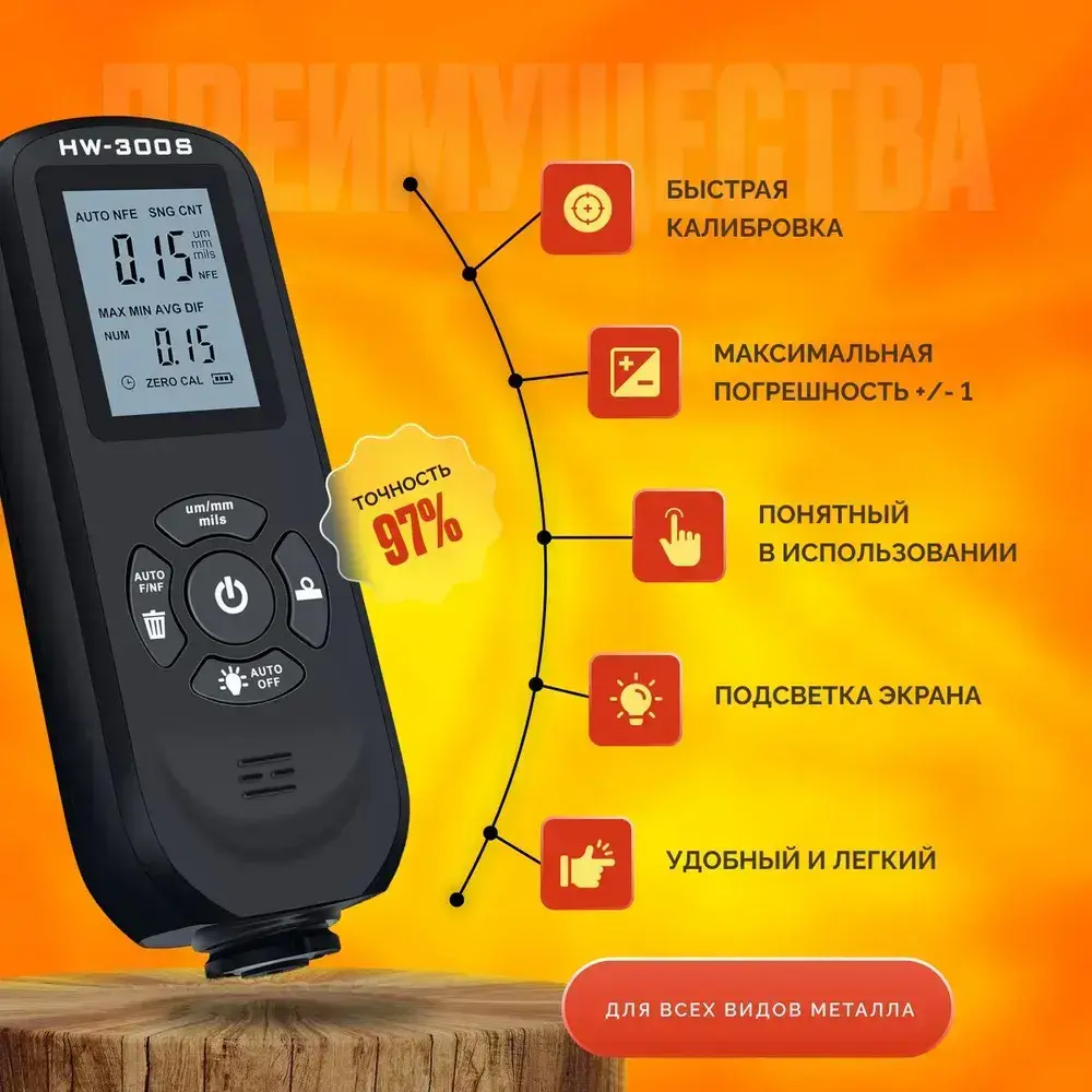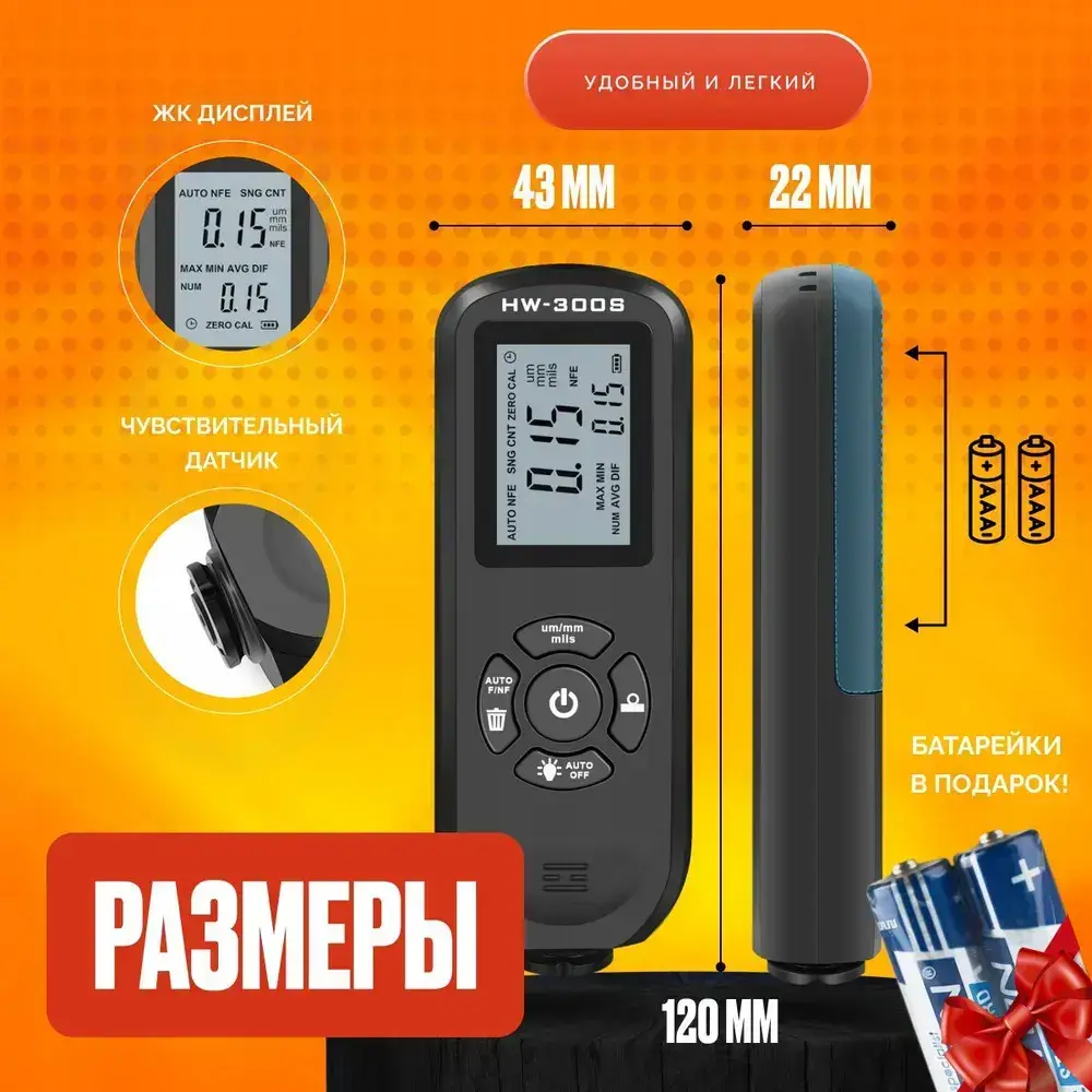 Толщиномер автомобильный для лакокрасочных покрытий, высокоточный измерительный прибор / Профессиональный прибор для автоподбора