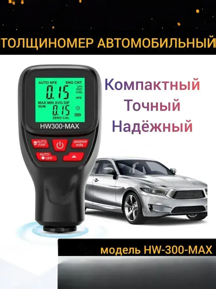 Толщиномер автомобильный лакокрасочных покрытий для автоподбора ЛКП магнитный HW300MAX