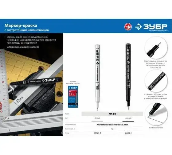 Тонкий черный маркер-краска 0.8 мм (1 шт) ЗУБР МК-81