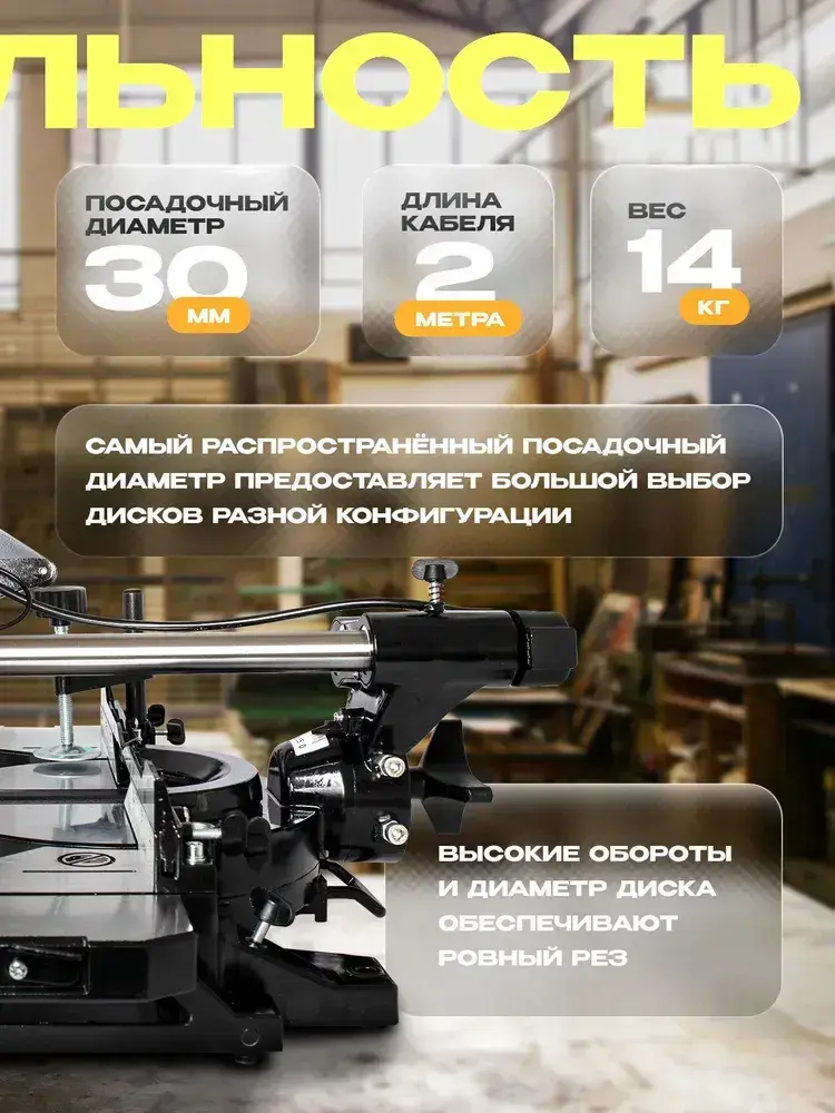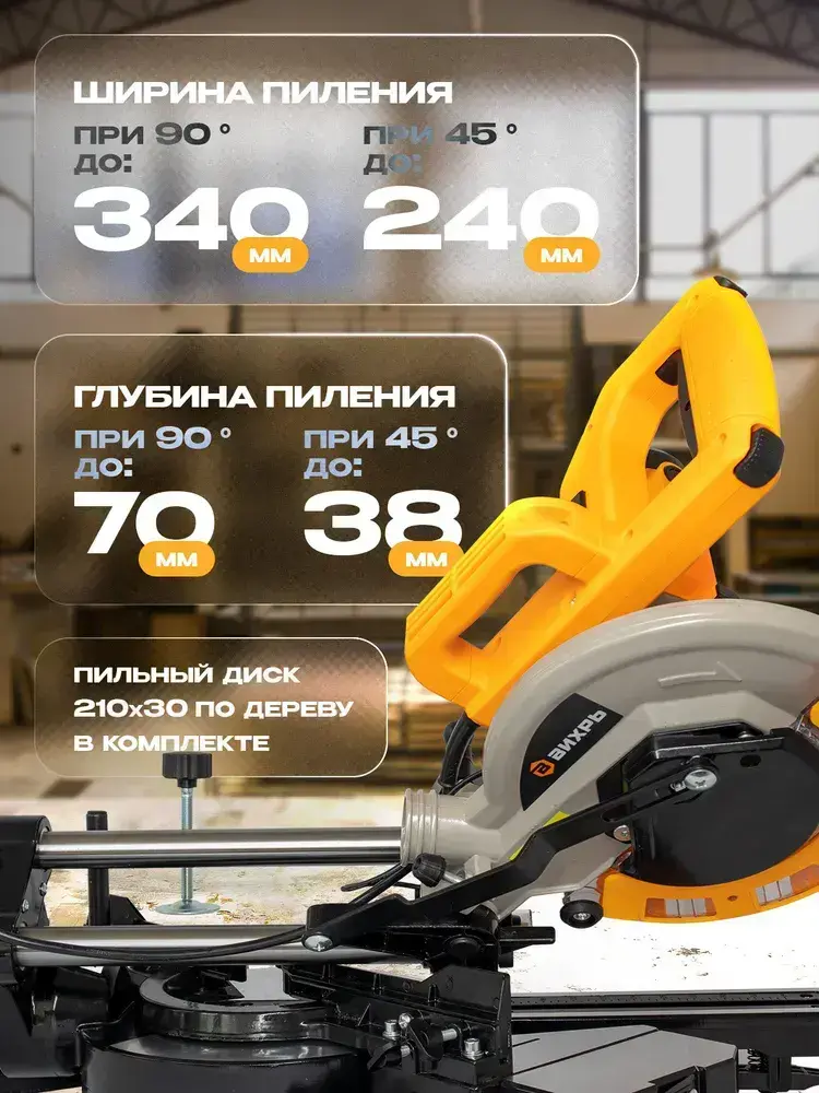 Торцовочная пила ПТ-2117ПЛ Вихрь - с протяжкой, 1700Вт, диск 210мм, пропил 90г-70мм/45г-38мм, лазер, с диском по дереву