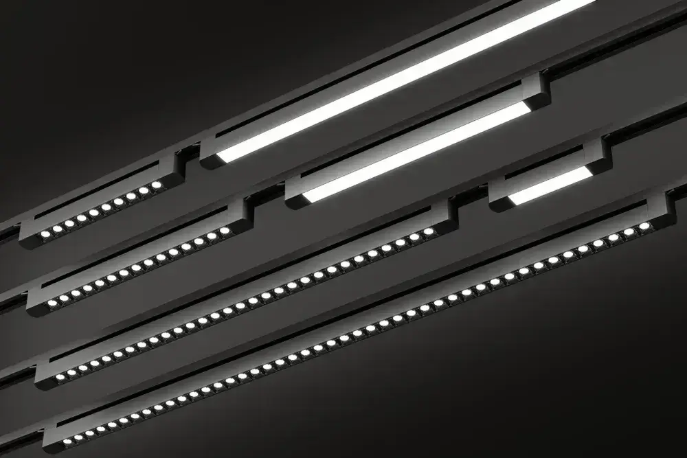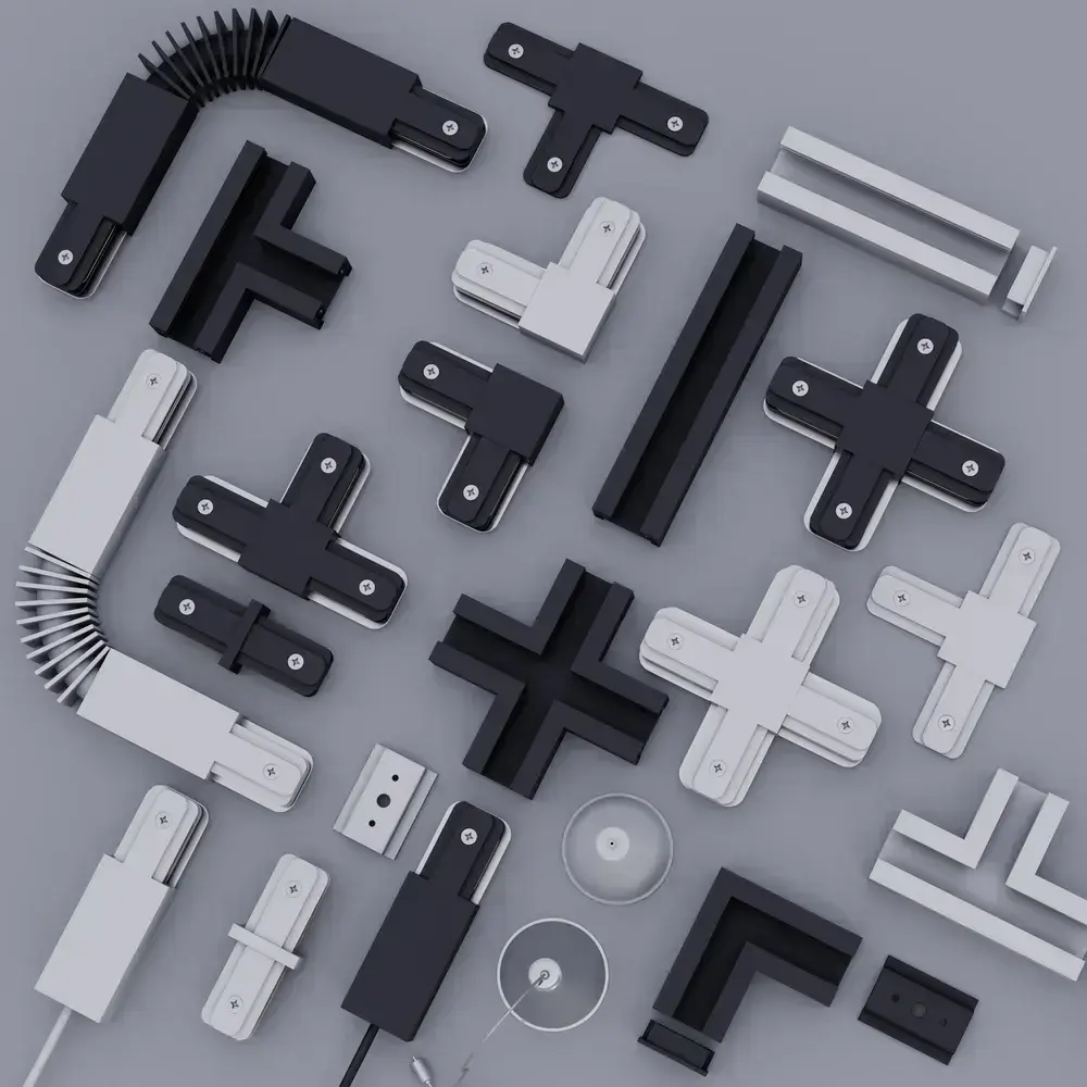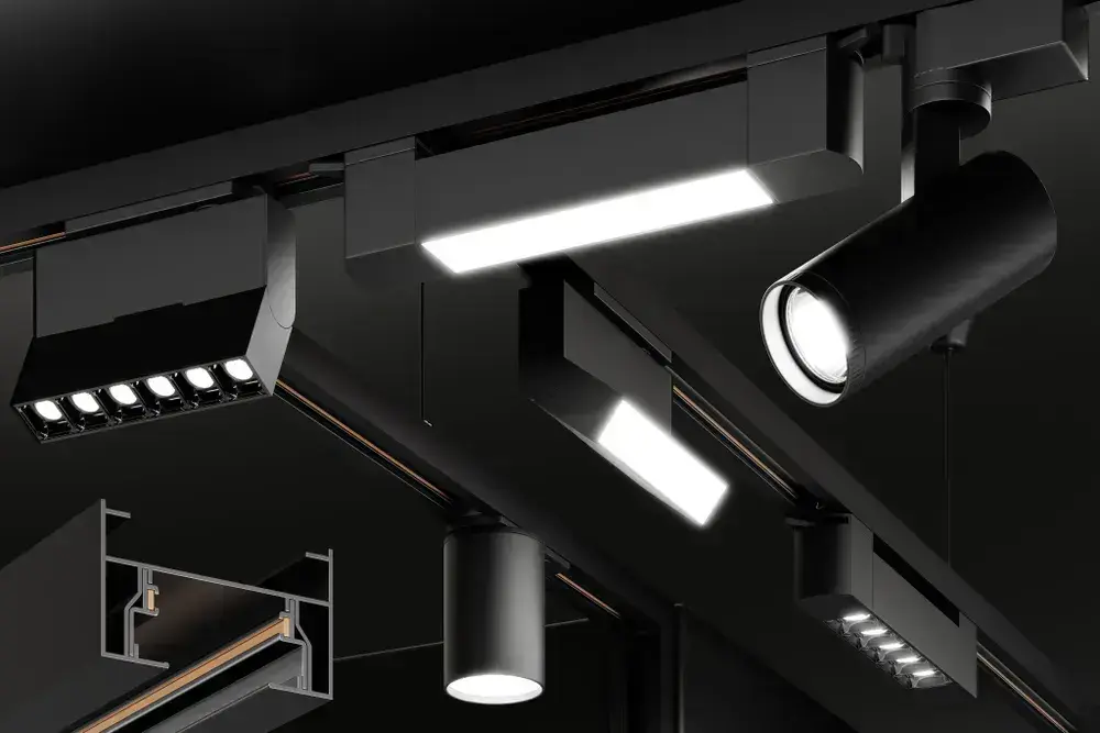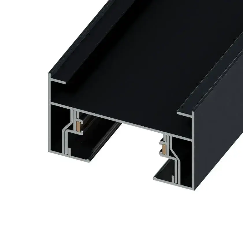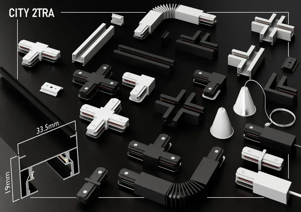 Трековая система освещения CITY 2TRA 220V 1.5м. Чёрный шинопровод осветительный двух-контактный однофазный трек подвесной/накладной 34x19x1500mm IP20/ коннектор для подключения и заглушка в комплекте
