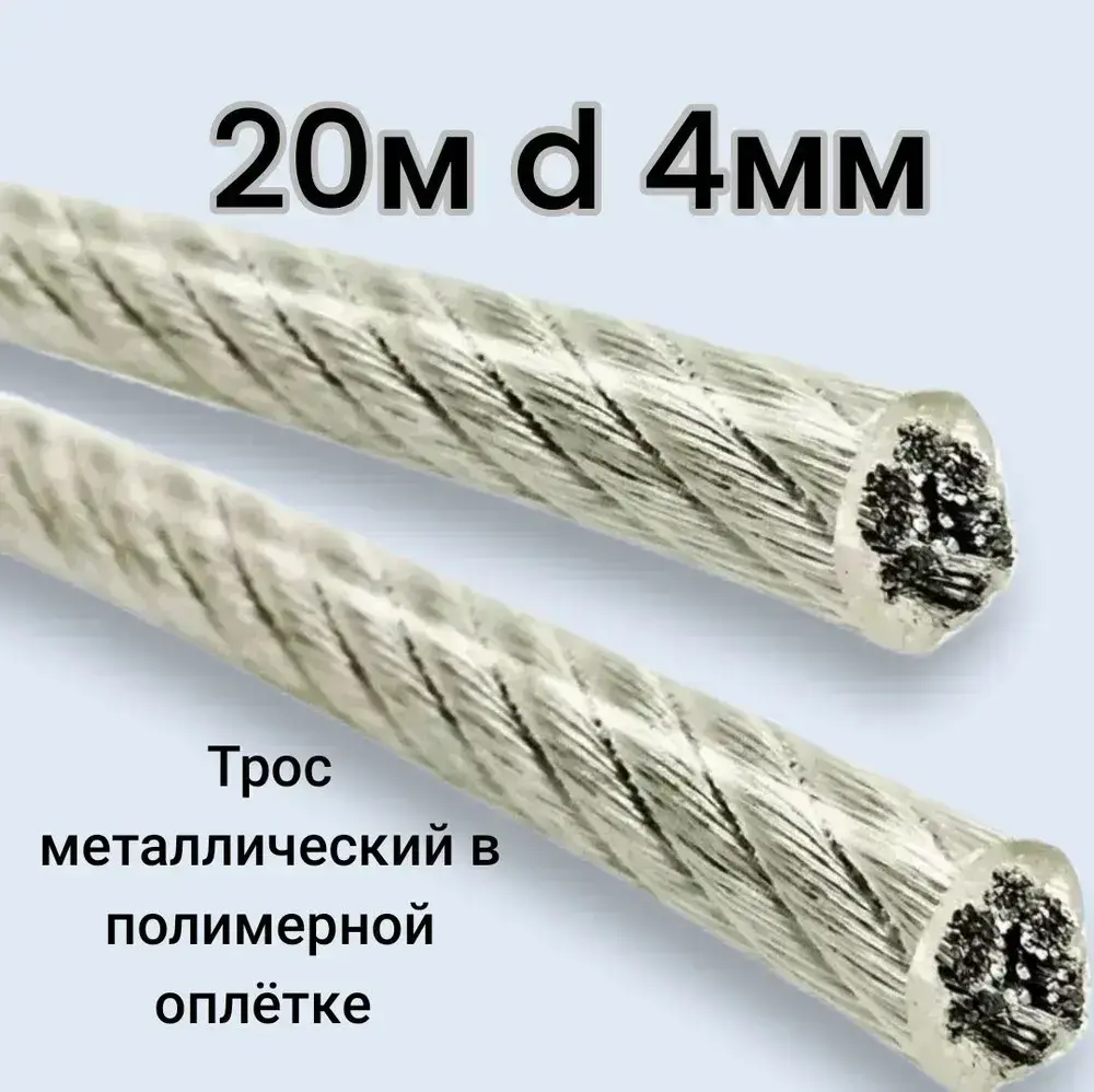Трос в оплетке 4мм, 20м металлический в полимерной оплетке, трос металлополимерный