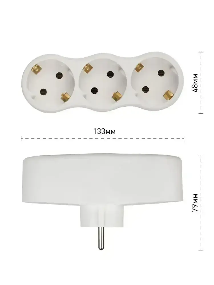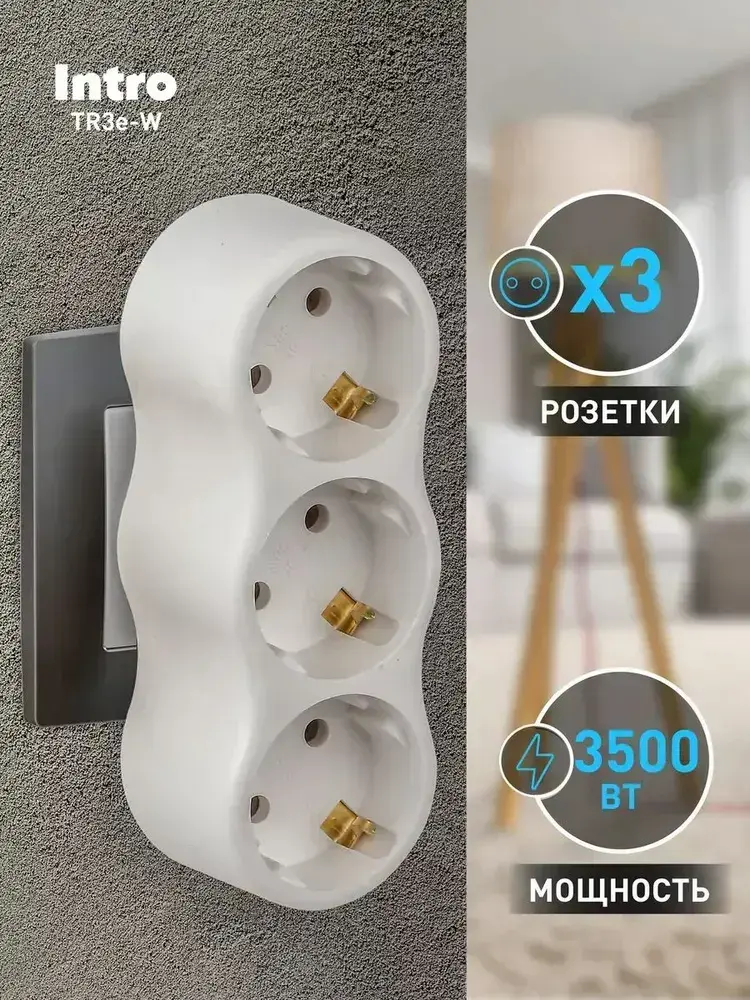 Тройник для розетки электрический Intro TR3e-W с заземлением 16А, белый
