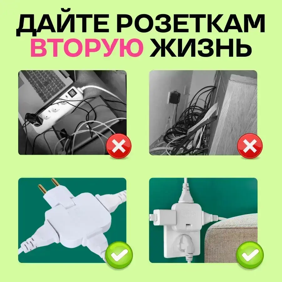 Тройник для розетки плоский поворотный разветвитель
