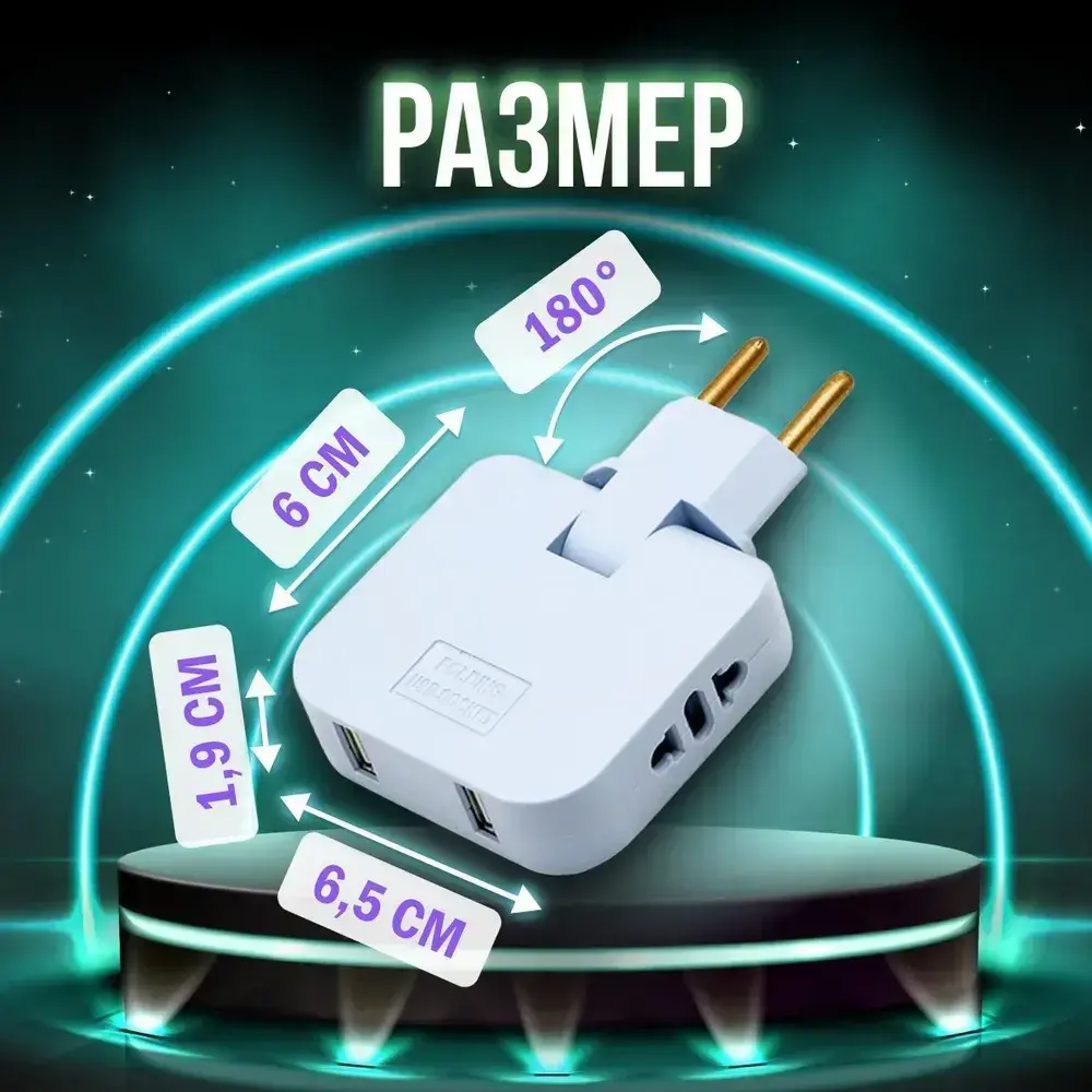 Тройник для розетки плоский с usb 2,0 усиленный поворотный разветвитель электрический на 16А