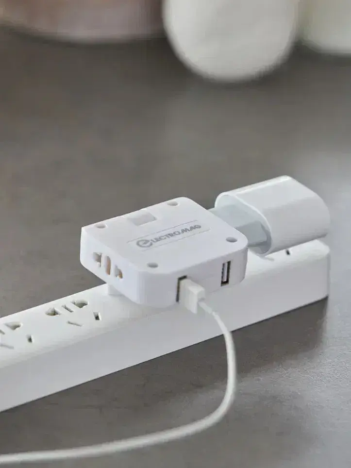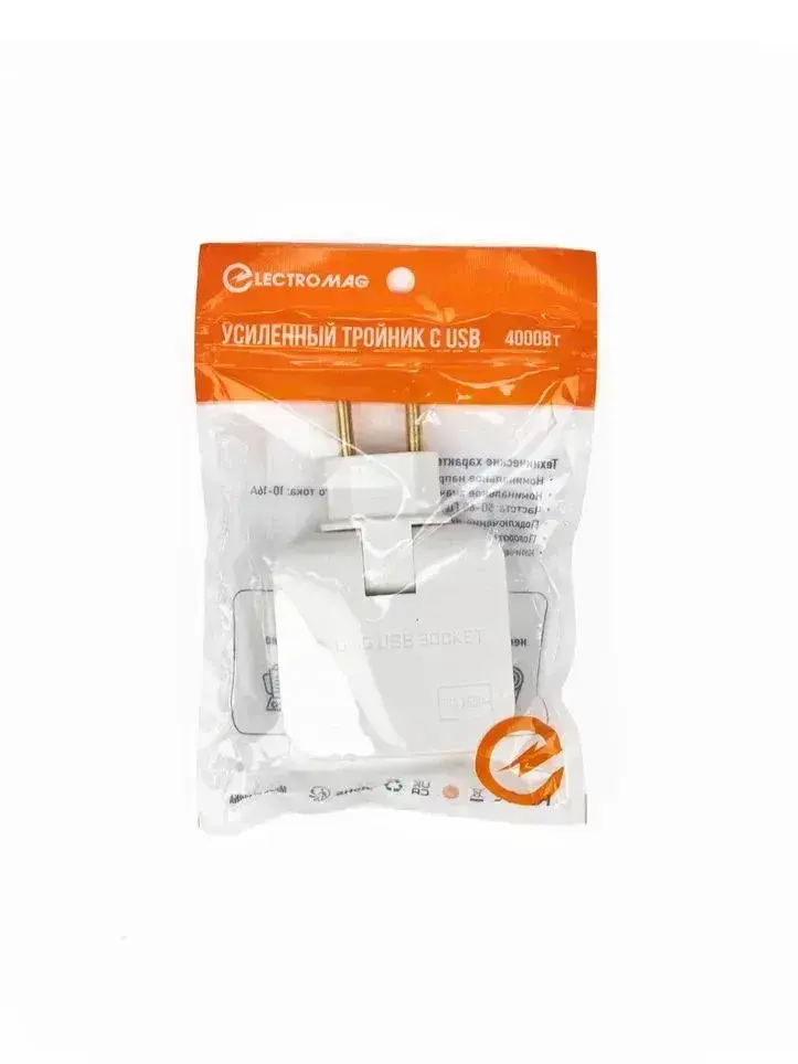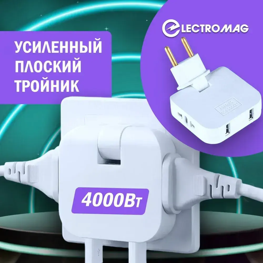 Тройник для розетки плоский с usb 2,0 усиленный поворотный разветвитель электрический на 16А ElectroMag