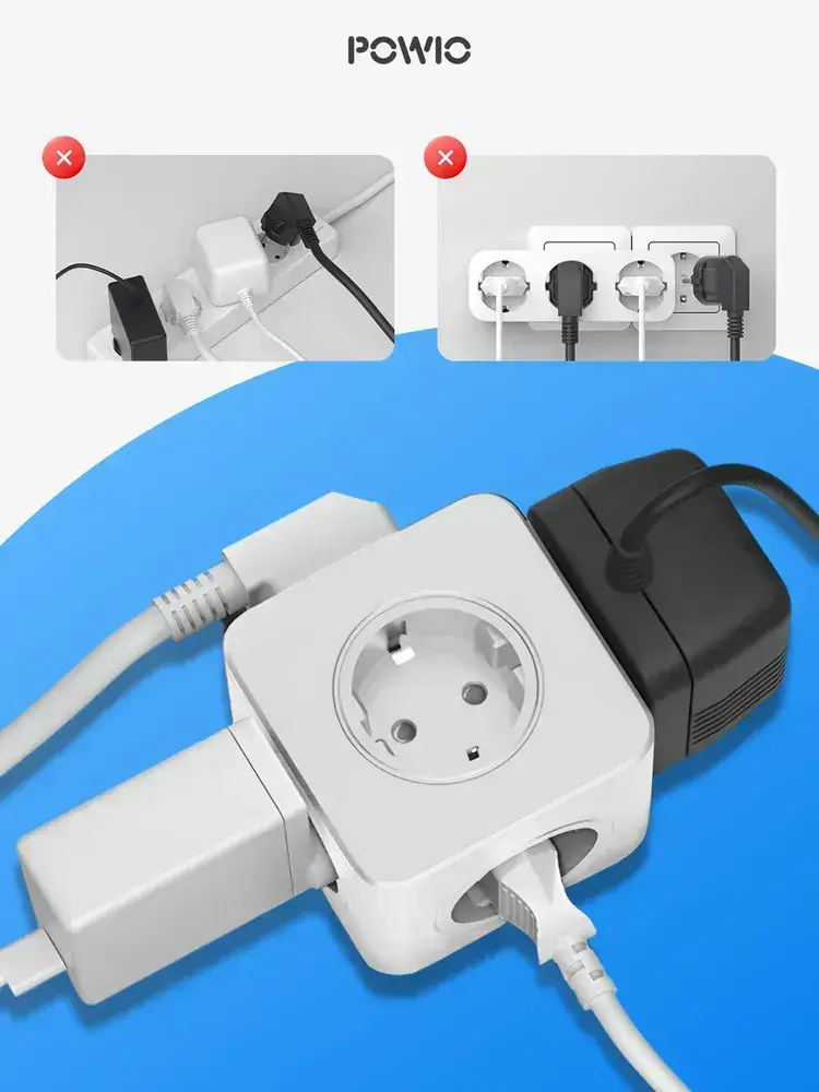 Тройник для розетки POWIO, 5 гнезд, 4000В, 16А, разветвитель электрический, защитные шторки, белый