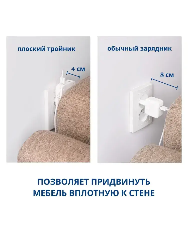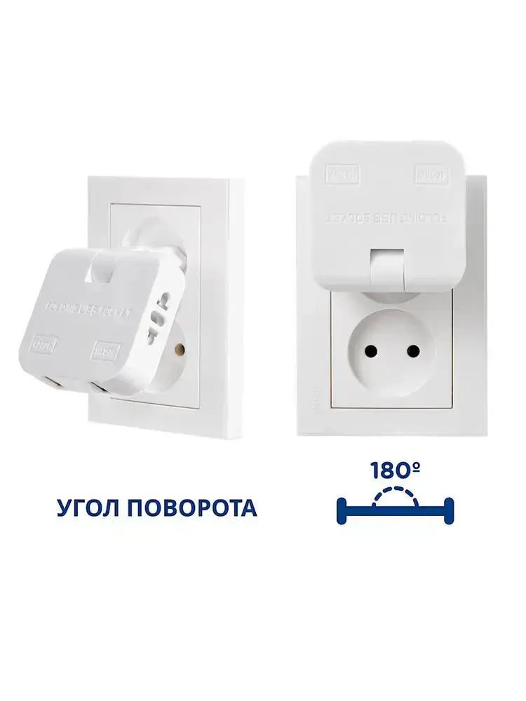 Тройник для розетки с USB 2.0 плоский поворотный, USB разветвитель 180 градусов, MartyHome
