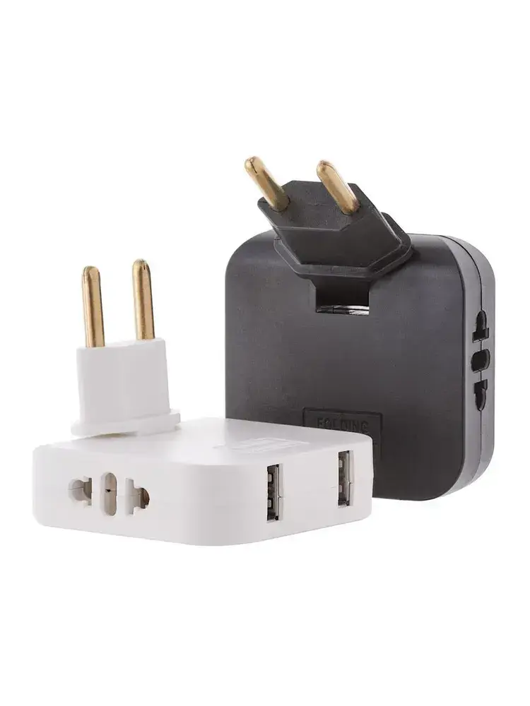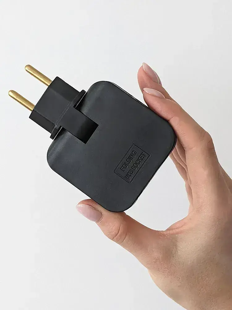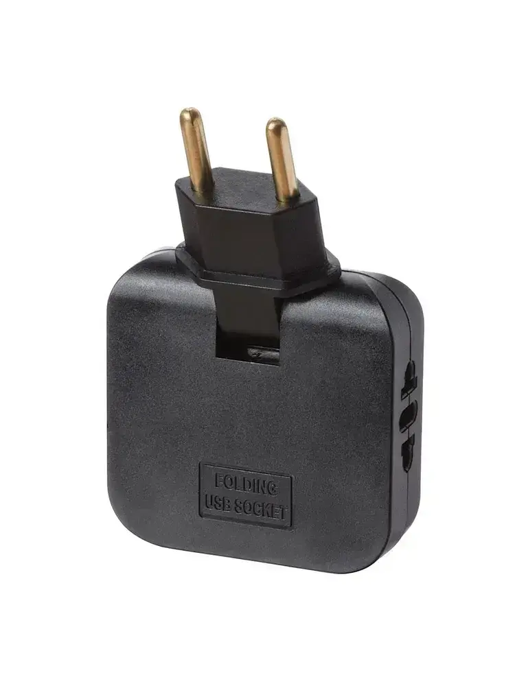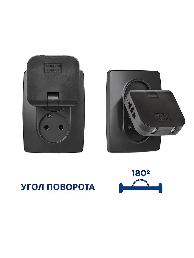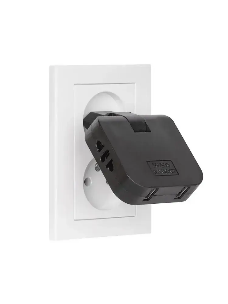 Тройник для розетки с USB 2.0 плоский поворотный, USB разветвитель электрический, черный