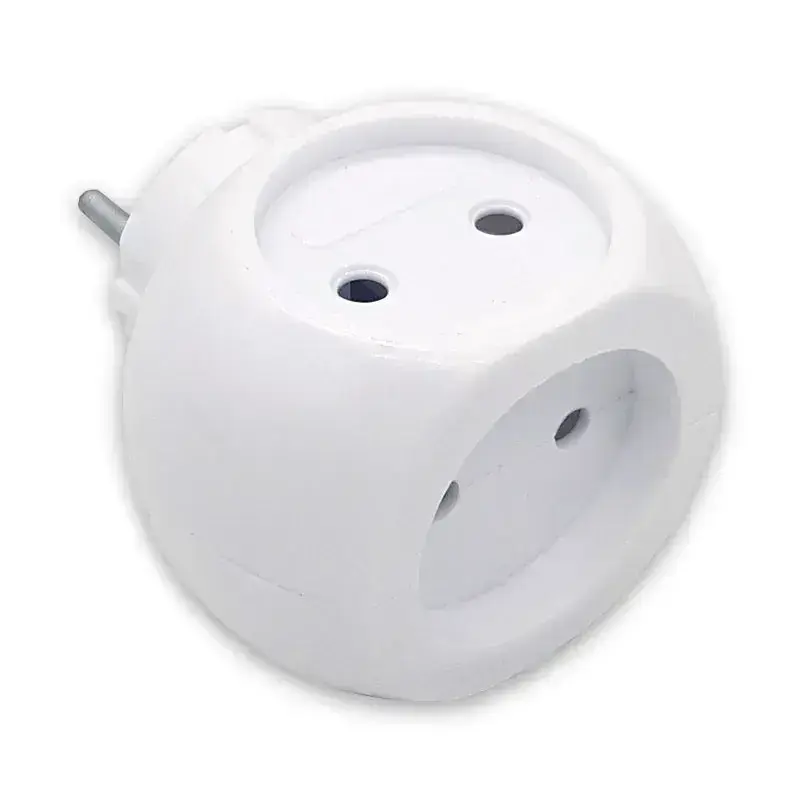 Тройник электрический, сетевой разветвитель, 3 розетки 250В 6А, белый, круглый