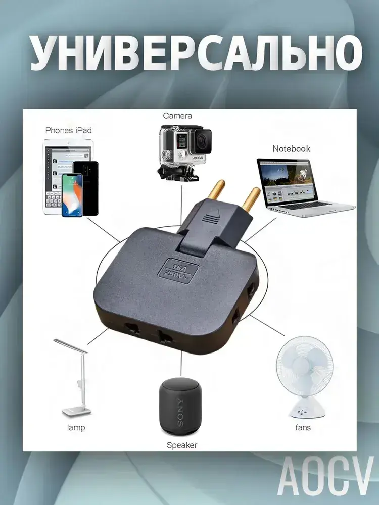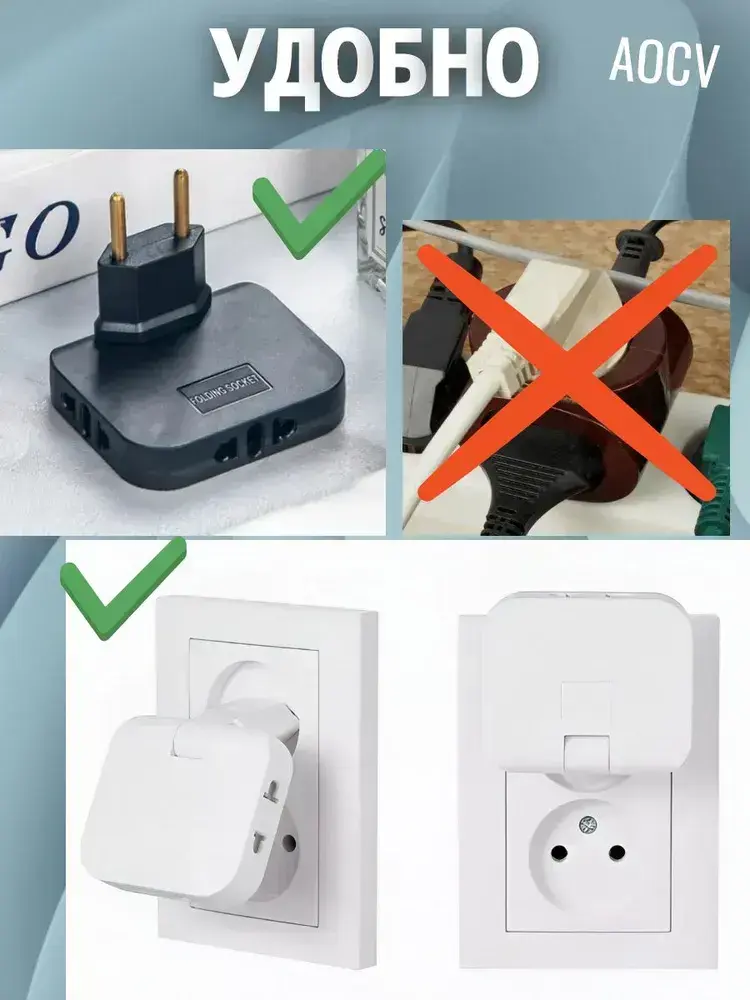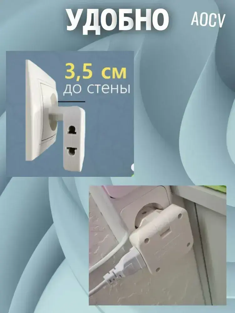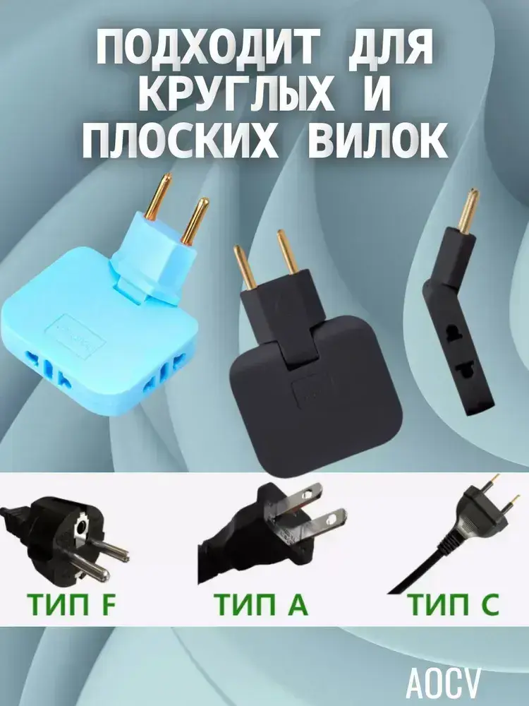 Тройник плоский поворотный для розетки, разветвитель 180 градусов AOCV