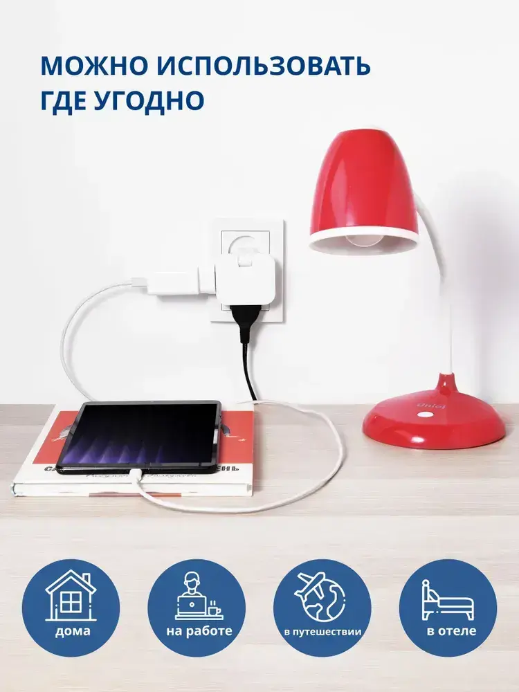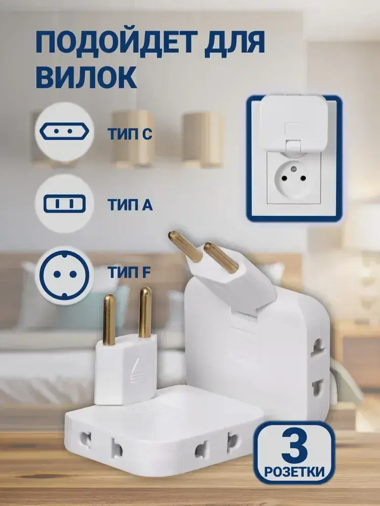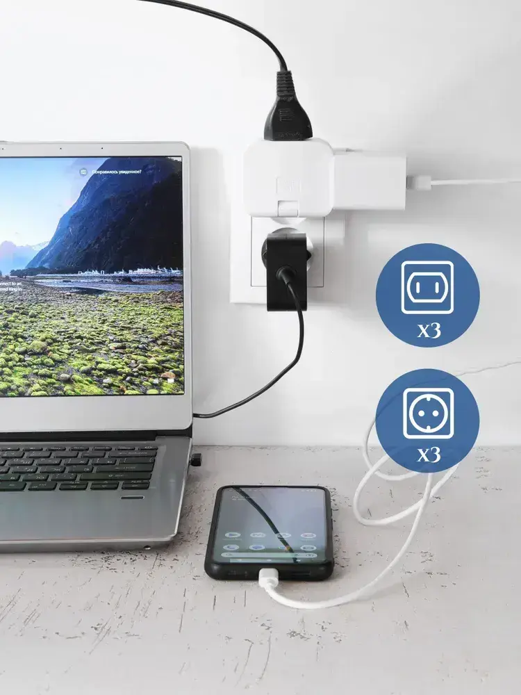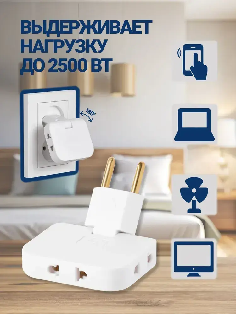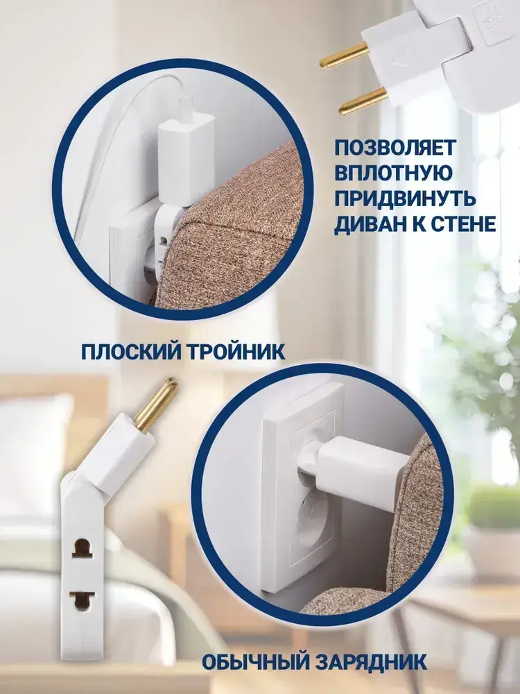Тройник плоский поворотный для розетки, разветвитель 180 градусов, MartyHome
