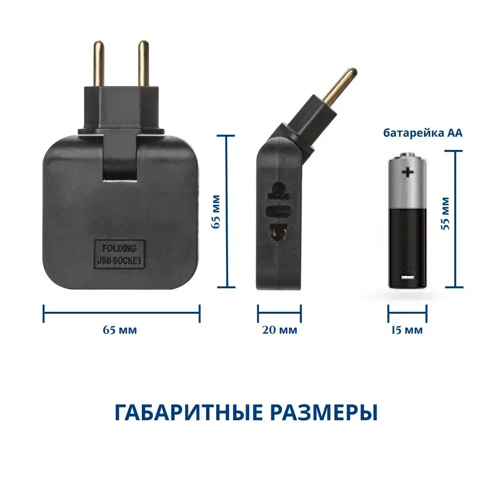 Тройник плоский поворотный для розетки с USB и TYPE-C черный, разветвитель электрический 180 градусов
