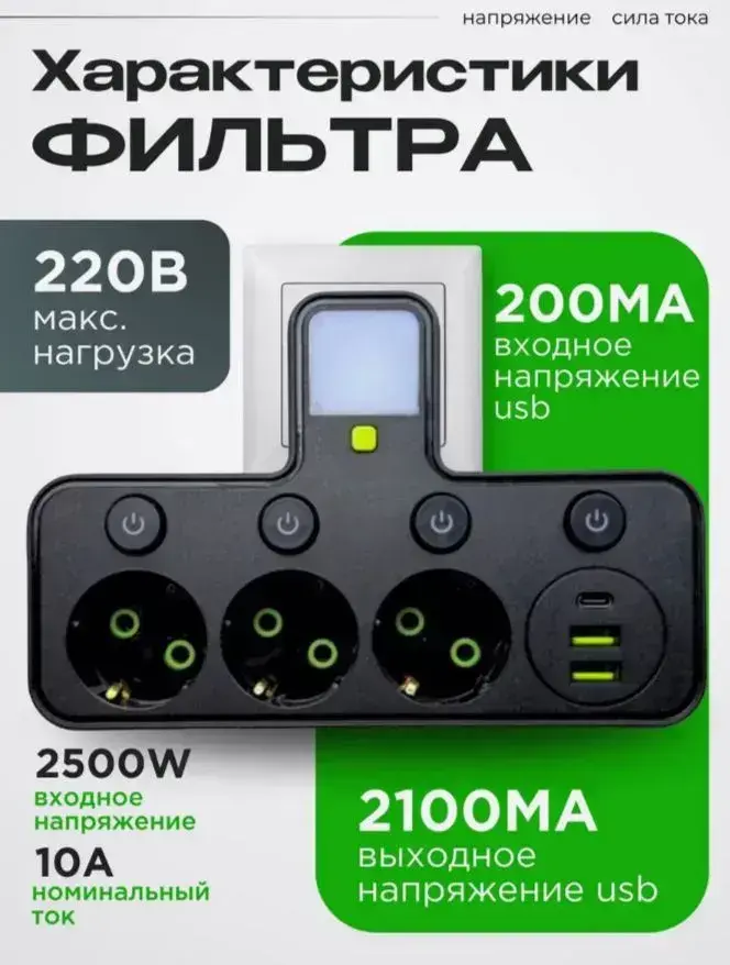 Тройник сетевой фильтр 3 розетки
