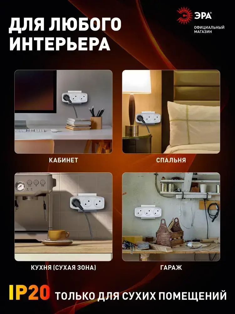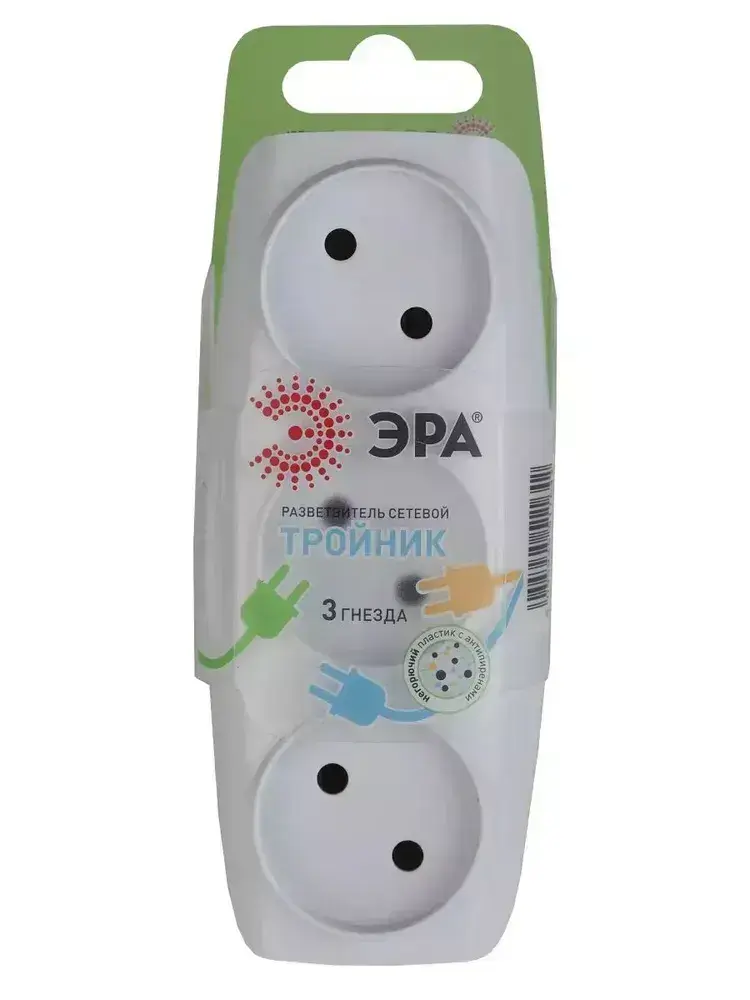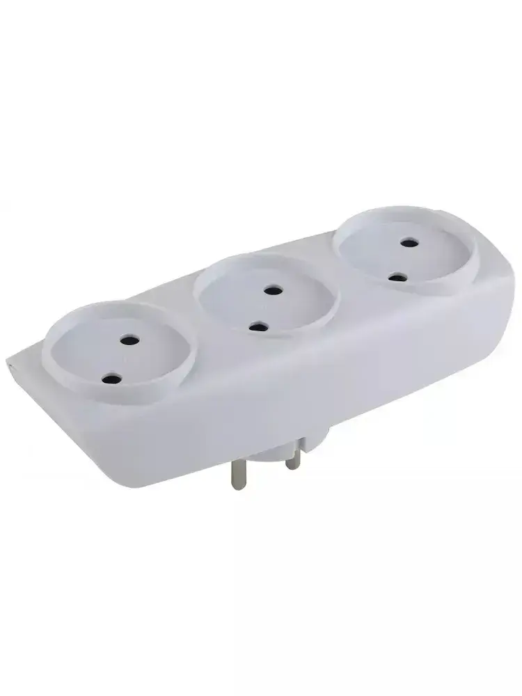 Тройник SP-3-W ЭРА / Тройник розетка электрический / Разветвитель без заземления, 3 розетки, плоский, 16А, белый